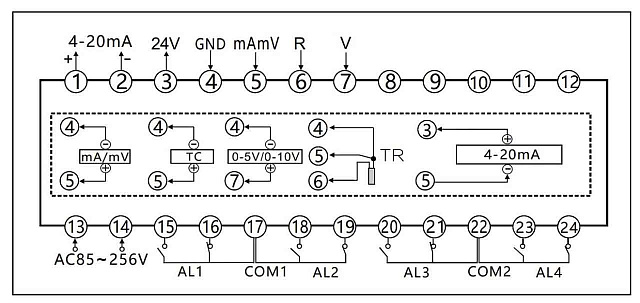 | Релейные выходы тревог | 4 реле; режимы: верхний предел, нижний предел, в пределах диапазона, вне диапазона; поддержка сверхнижнего/сверхверхнего |