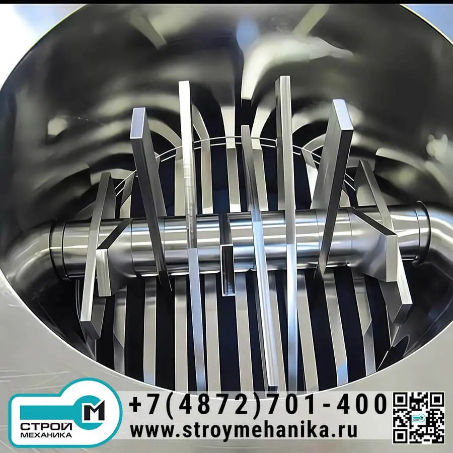 Основой конструкции является прочный корпус с фланцевыми присоединениями, рассчитанный на промышленную эксплуатацию. Внутри корпуса установлен фиксированный ограничивающий элемент (решётка), задающий требуемую крупность продукта. Через зону решётки материал проходит под воздействием вращающихся валов с рабочими ножами, которые интенсивно разрушают агломераты и кусковые включения, уменьшая размер до состояния, пригодного для дальнейшей переработки и транспортирования.