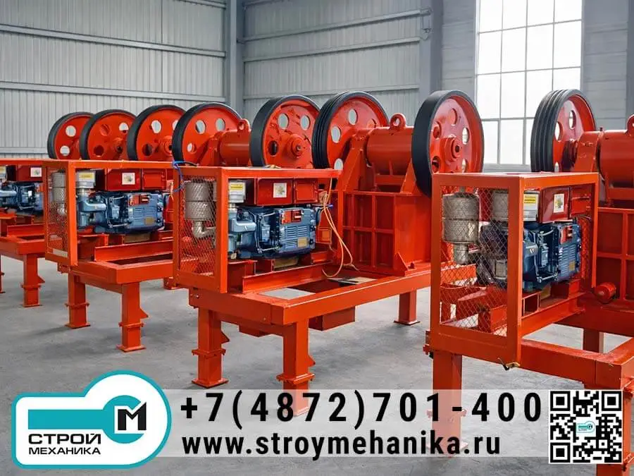 Малогабаритная щёковая дробилка предназначена для первичного (грубого) дробления камня, руды и вторичных материалов (бетон, кирпич, ЖБИ после демонтажа) в условиях, где важны минимальные габариты, умеренная мощность и гибкость размещения. Дробление выполняется в клинообразной камере: материал подаётся сверху и разрушается в результате периодического сжатия между неподвижной и подвижной щеками, после чего выгружается снизу через регулируемую щель. Такой принцип обеспечивает стабильный выход продукта и позволяет подбирать фракцию под дальнейшее грохочение или вторичную стадию.