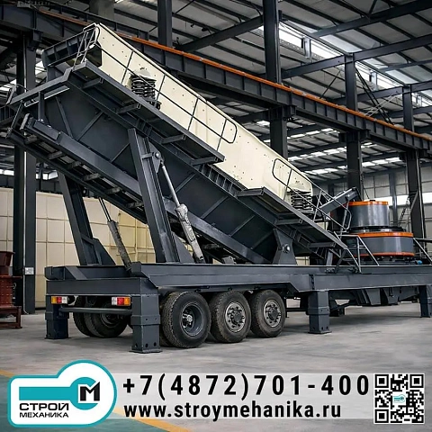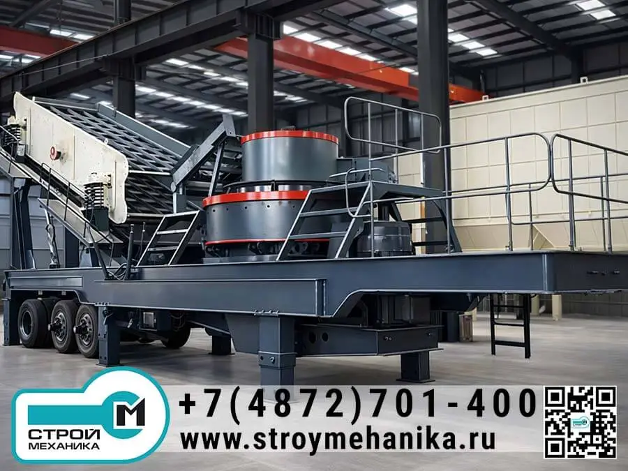 Мобильная установка для производства искусственного песка (VSI) предназначена для получения качественного песка и улучшенного по форме щебня непосредственно на площадке работ: в карьере, на дробильно-сортировочной карте, на временном производстве или на объекте переработки строительных отходов.В отличие от компрессионных схем (щёковая/конусная), здесь применяется высокоскоростное ударное дробление по вертикальной оси (VSI), которое одновременно выполняет тонкое дробление + формование зерна, что критично для бетонов и асфальтобетонов, где важны форма и гранулометрия.
