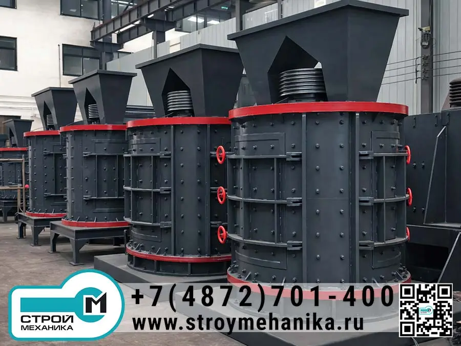 Вертикальная комбинированная дробилка серии PLF — это универсальная машина для тонкого и средне-тонкого дробления с одновременным «додроблением/дошлифовкой» материала внутри камеры. По технологической роли оборудование устанавливают после среднего дробления как финишную ступень перед сортировкой/классификацией. Дробилка рассчитана на получение товарной фракции мелкого класса и на стабилизацию гранулометрии за счёт многоактного воздействия на частицы внутри вертикального корпуса.