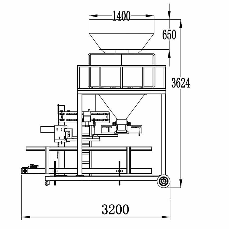 Подача материала осуществляется по трёхступенчатому принципу (крупная, средняя и точная фазы), что позволяет оптимизировать скорость и повысить точность. Гравитационно вибрационная схема подачи с двумя сменяемыми дозаторами A/B позволяет достичь производительности до 400–500 мешков в час, что составляет 6–8 мешков в минуту.