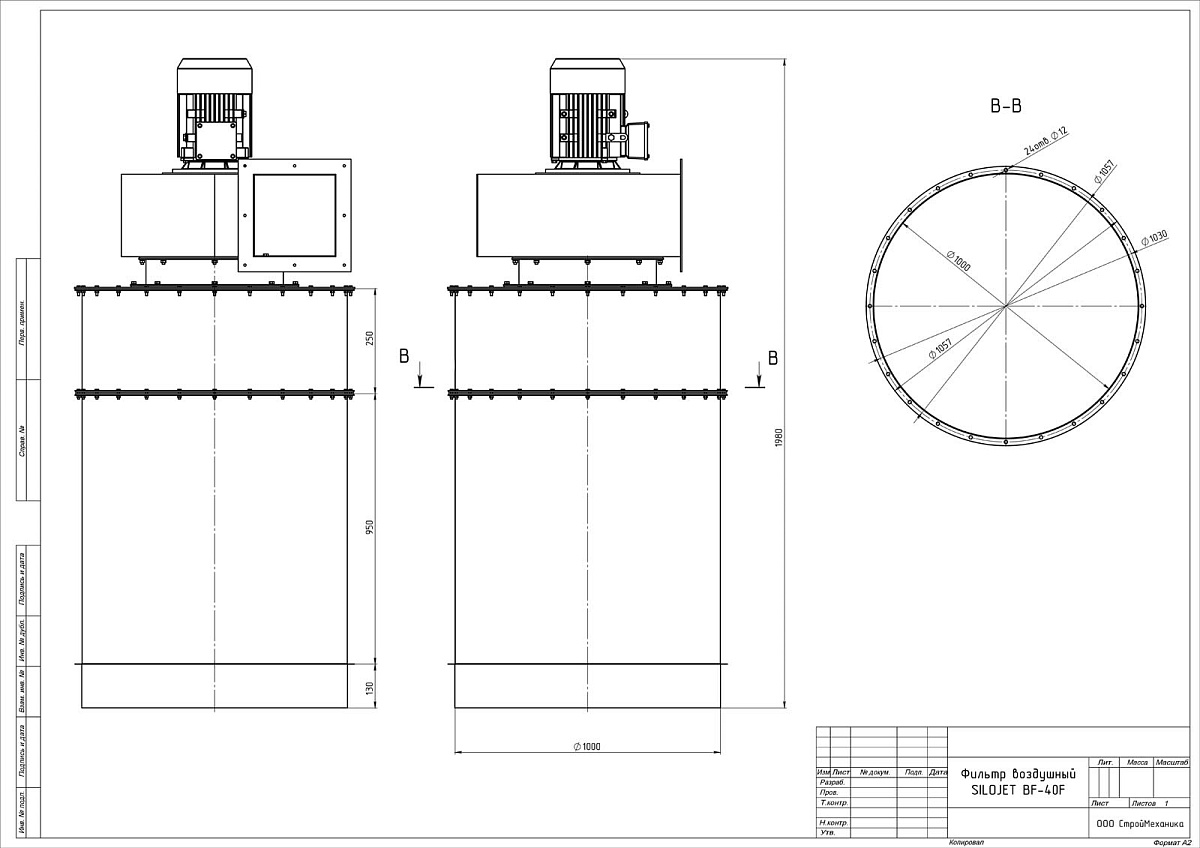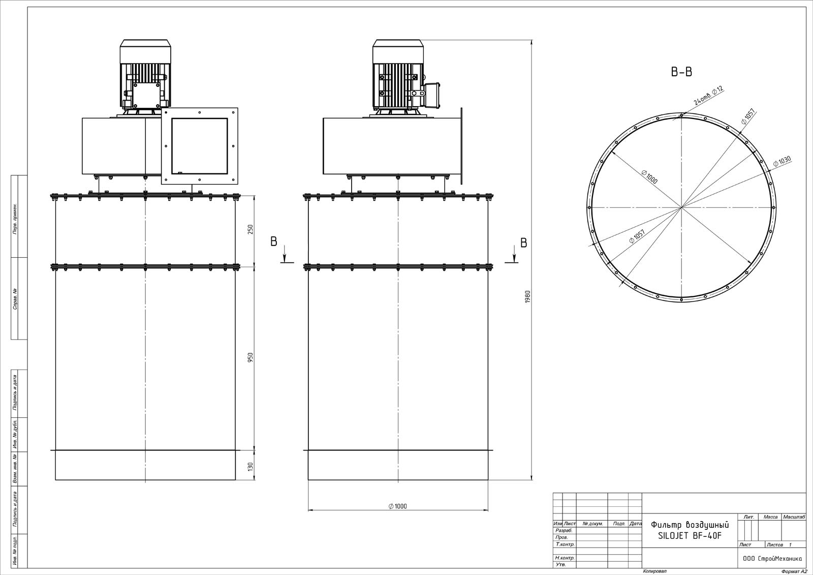 Воздушный фильтр силоса BF-40F проектировался как универсальный промышленный фильтр для задач, где требуется сочетание трёх параметров: высокая эффективность сухой очистки, компактность и простая интеграция. Встроенный вытяжной вентилятор мощностью 4,0 кВт позволяет получить законченное решение без подбора внешней тягодутьевой части, а общая высота 1850 мм делает установку удобной для размещения в типовых производственных помещениях. Диаметр корпуса 1000 мм обеспечивает достаточный внутренний объём для корректного распределения потока и стабильной работы фильтрующих элементов.