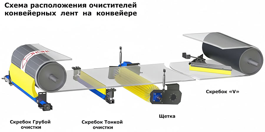 Снимает остаточную тонкую плёнку материала и липкие частицы, которые остаются после первичного скребка. В результате лента уходит на обратную ветвь практически чистой, что снижает износ роликоопор, уменьшает количество уборки под конвейером и улучшает экологию участка.
