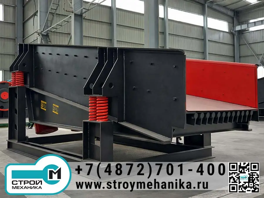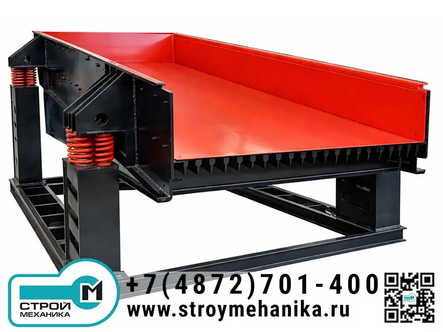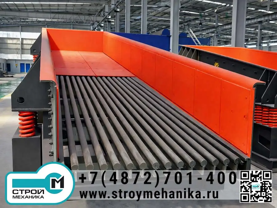 Конструктивно питатель относится к классу вибрационных устройств с виброприводом на базе дебалансных вибродвигателей. Управление производительностью и интенсивностью транспортирования достигается за счёт регулирования вибровозбуждения (изменением взаимного угла дебалансов/эксцентриков), что позволяет подстроить подачу под фактическую влажность, грансостав и «сыпучесть» материала без перестройки всей линии.
