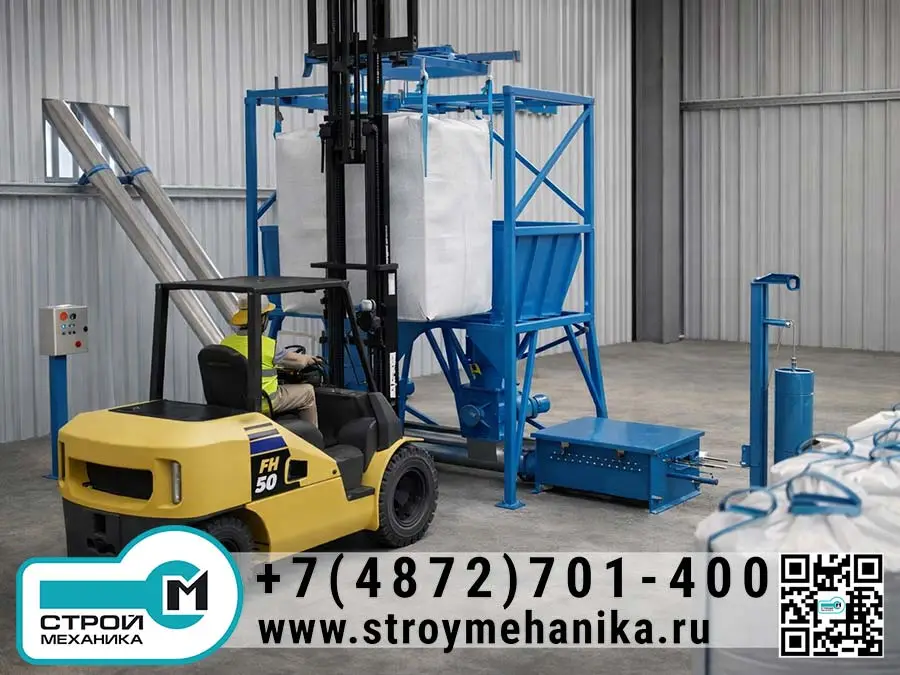Ключевая задача таких систем - обеспечить подачу материала из биг-бэга в процесс без просыпей, вторичного загрязнения и пыли при присоединении/отсоединении мешка. Для этого применяются узлы стыковки горловины (докинг), уплотнения и элементы «гигиеничной» конструкции; в мобильных/погрузочных вариантах также используется воронка с дополнительной мембраной и разные системы стыковки, обеспечивающие практически полное опорожнение биг-бэга.