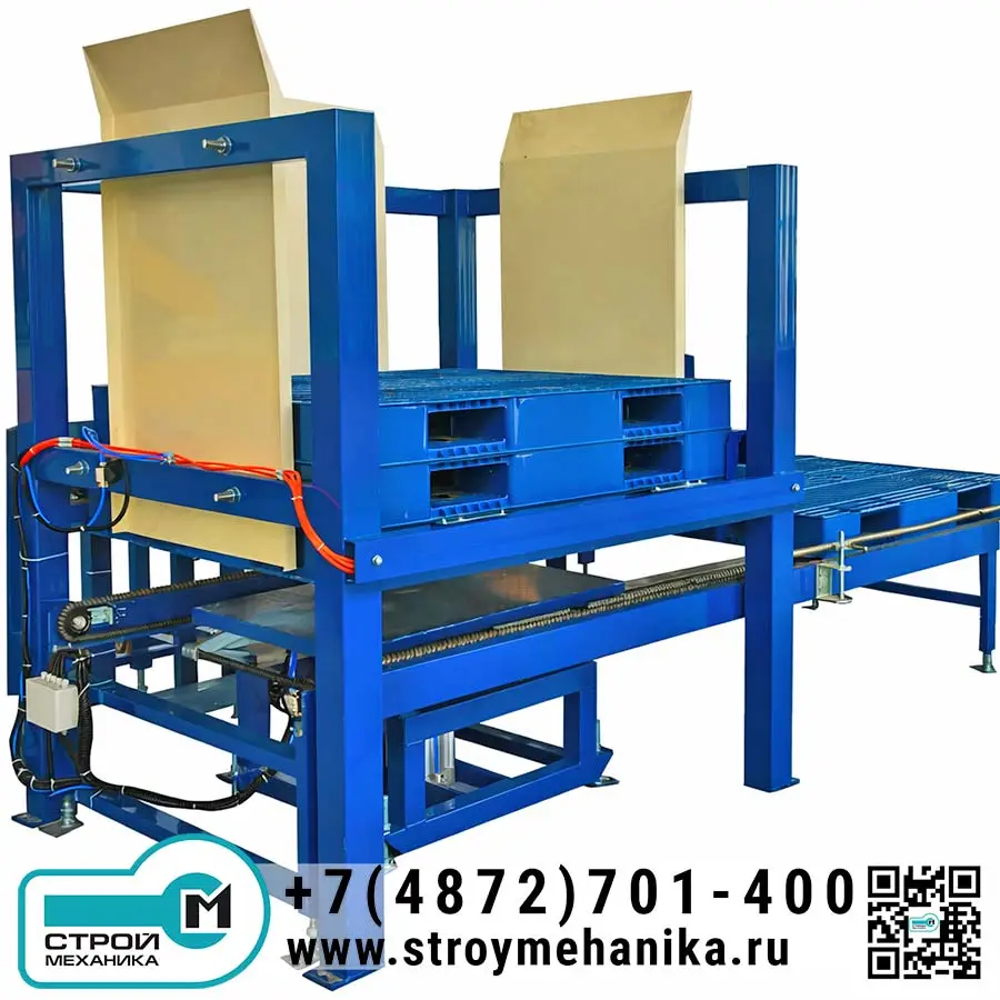 Оборудование совместимо с распространёнными форматами поддонов и может быть адаптировано под требуемую геометрию и направление выдачи. Для линий мешкозашивки и паллетизации диспенсер обеспечивает ровный, стабильный поток пустых поддонов с заданной скоростью, согласуя работу паллетайзера, конвейерных секций и складской техники (погрузчик).