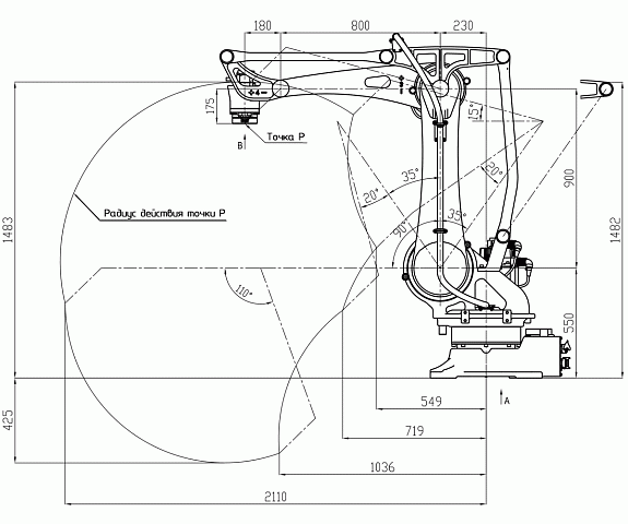 | Рабочий радиус | 2100 мм |