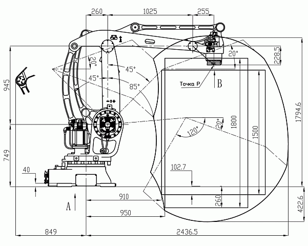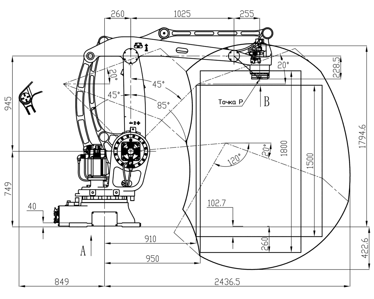 | Рабочий радиус | 2400 мм |