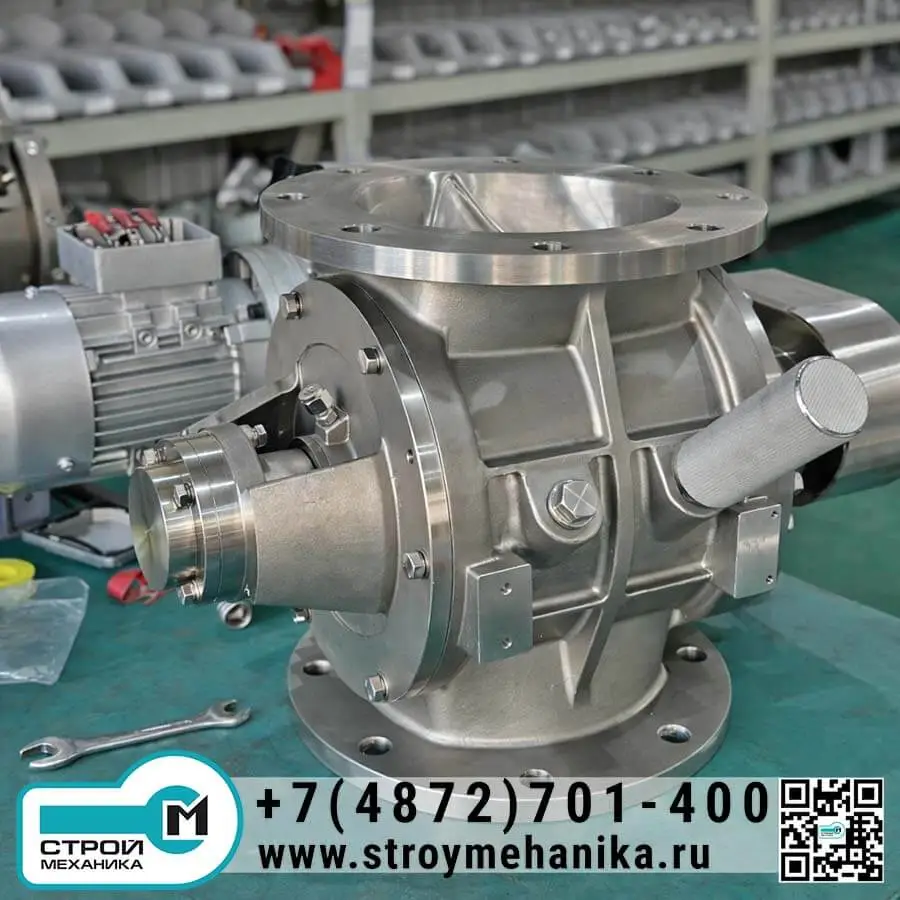Материал заполняет карманы ротора через увеличенный, мягкий по траектории вход. По мере вращения карманы по очереди отделяются от верхней зоны и выгружаются в нижний патрубок либо в подающую скобу для ввода в пневмолинию. Увеличенная горловина и геометрия карманов снижают ударные нагрузки и срез гранул, сохраняя фракционный состав. Малые зазоры и уплотнение валов удерживают перепад давления и минимальные утечки, а продувка валов защищает уплотнения от пыли. Такой режим позволяет одновременно выполнять дозирование и поддержание воздушного затвора для стабильной работы фильтров/циклонов и пневмотранспорта.