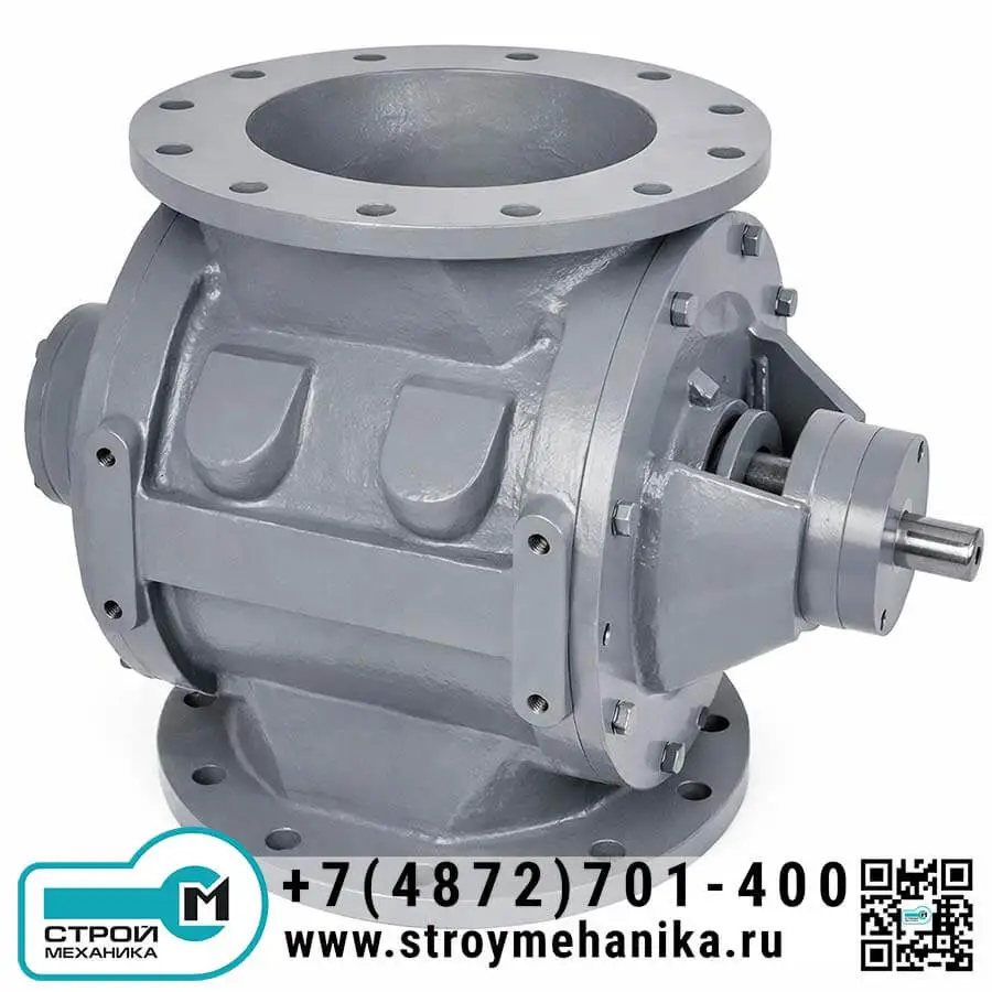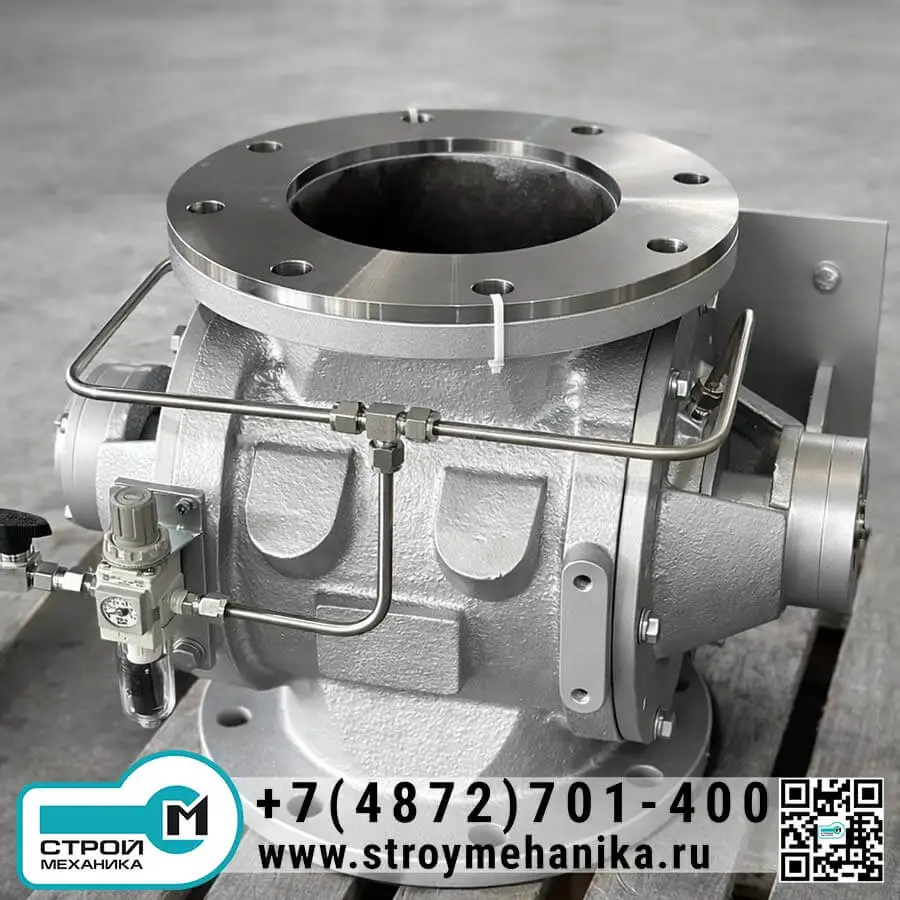 Материал через верхний патрубок заполняет карманы ротора. По мере вращения карманы последовательно изолируются от верхней зоны и разгружаются вниз через выходной патрубок. Малые зазоры «ротор-корпус», уплотнения валов (лабиринт/сальник) и, при необходимости, продувка валов ограничивают переток воздуха, поддерживая перепад давления между зонами. Такая кинематика обеспечивает одновременную дозировку и поддержание воздушного затвора, что сохраняет эффективность фильтров/циклонов и стабильность пневмотранспорта.