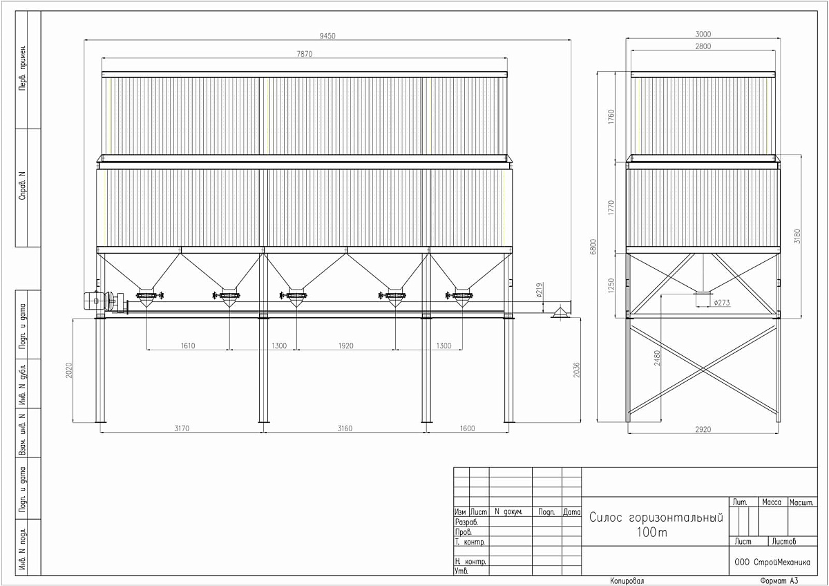 По сравнению с вертикальными силосами, горизонтальная конструкция не требует высоких металлоконструкций, проще в обслуживании и может располагаться внутри помещений.