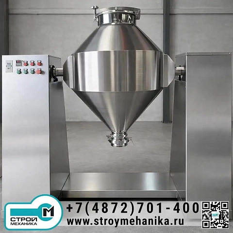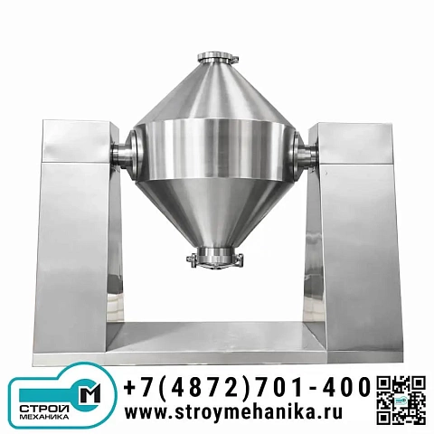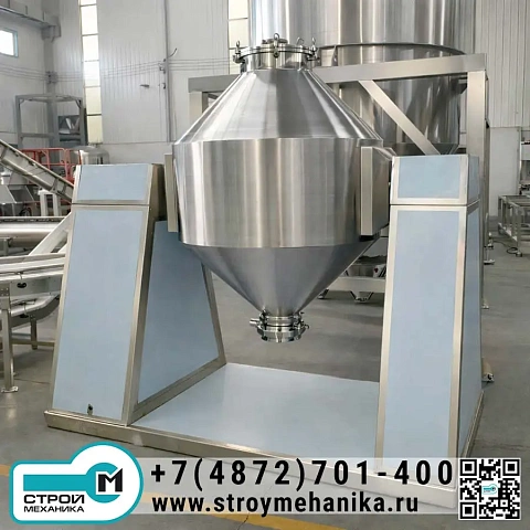 Конический барабанный смеситель серии DCB предназначен для приготовления однородных сухих смесей из двух и более компонентов в пищевой, химической, фармацевтической, комбикормовой, строительной и смежных отраслях. Оборудование выполнено в виде вращающейся конической смесительной ёмкости, установленной на силовой раме с приводом и системой управления. Геометрия «двойной конус» обеспечивает устойчивое перемещение материала при вращении, за счёт чего компоненты многократно перераспределяются по объёму и эффективно перемешиваются.