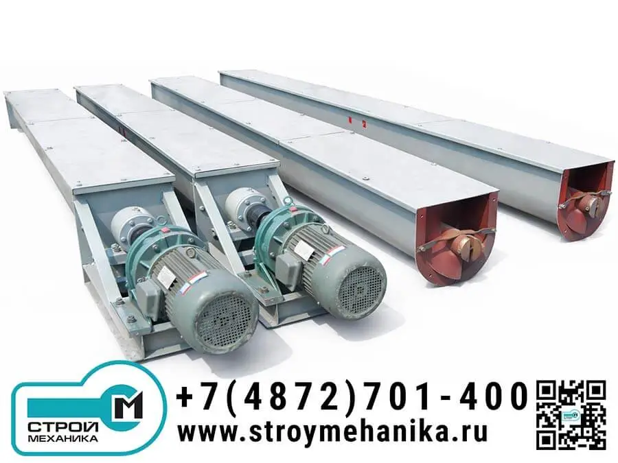 Конвейер рассчитан на работу с порошкообразными и зернистыми материалами (цемент, песок, зола, угольная мелочь, шлаки и т.п.), а также с рядом мелкокусковых фракций. При этом шнековые системы в целом не применяют для сильно липких, слёживающихся и быстро портящихся материалов, поскольку они склонны к налипанию на витки и стенки, росту сопротивления и перегрузкам привода. Для корректного подбора важны физико-механические свойства продукта (сыпучесть, абразивность, влажность, склонность к слёживанию) и допустимая степень заполнения лотка — это напрямую влияет на ресурс витков, подвесных опор и потребную мощность.