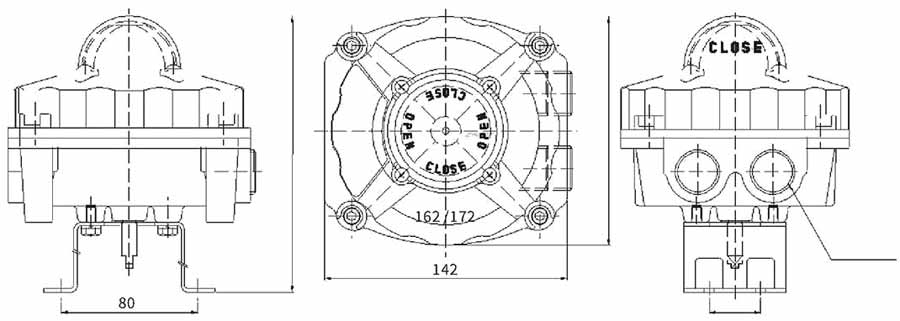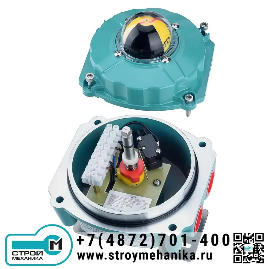 В зависимости от угла поворота, кулачок воздействует на толкатели механических концевых выключателей, замыкая или размыкая их контакты. Эти изменения состояния (например, «нормально открытый» / «нормально закрытый») передаются в систему управления (ПЛК, АСУ ТП, пульт диспетчеризации), формируя дискретный сигнал о текущем положении «Открыто» или «Закрыто». Параллельно с этим поворотный механизм приводит в действие внешний визуальный индикатор, меняя его цветовую метку.