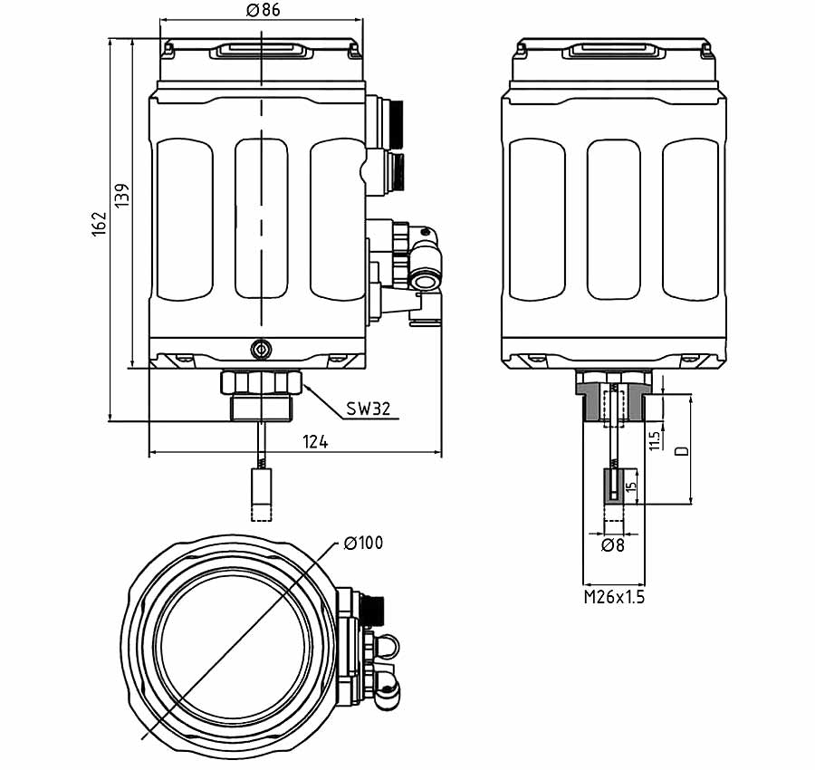 | Способ монтажа | На привод клапана (предпочтительно вертикально), винтовое крепление |
