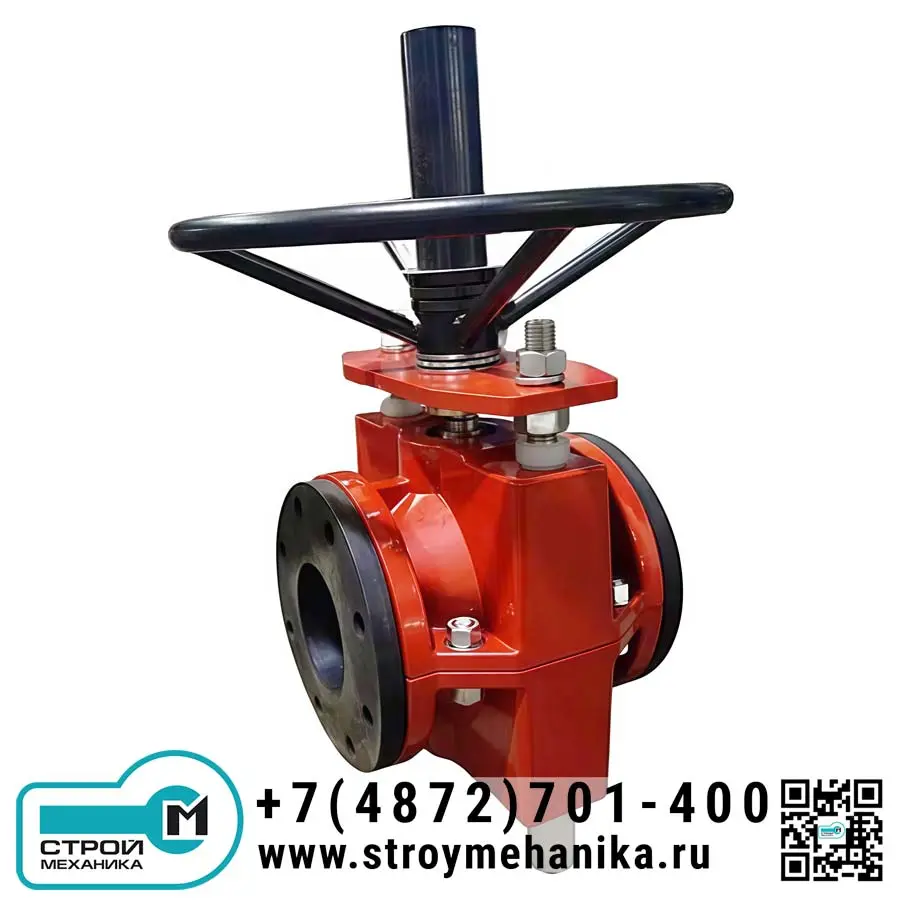 - Закрытое состояние. При полном ходе прижимных элементов втулка полностью пережимается, герметично перекрывая проход. Уплотнение происходит по всей окружности, обеспечивая надежное отсечение потока, включая среды с твердыми включениями. Поскольку механизм воздействует на втулку снаружи, рабочая среда не контактирует с движущимися частями клапана, что предотвращает их износ и коррозию.
