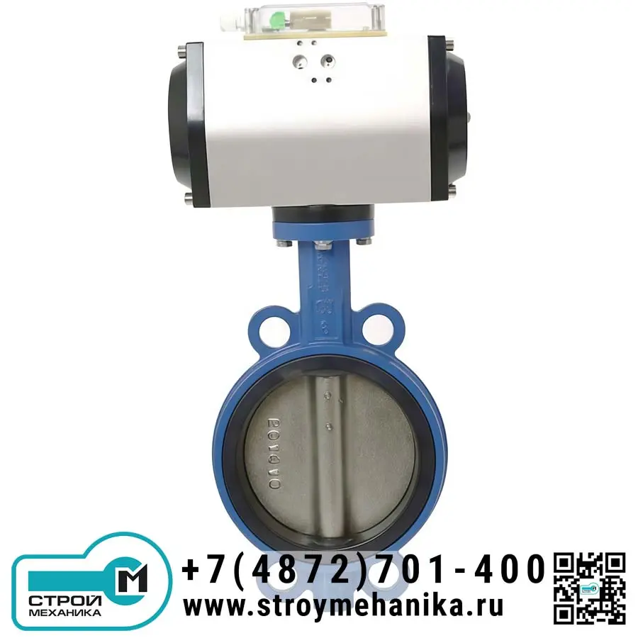 Управление поворотом осуществляется через пневматический привод двустороннего действия (DA). Сжатый воздух, подаваемый в одну из камер привода, воздействует на поршень, который через реечный или кулачковый механизм преобразует линейное движение во вращательное. Это вращение через приводной вал передается непосредственно на диск клапана. При подаче воздуха в противоположную камеру происходит поворот диска в обратном направлении. Такая конструкция обеспечивает быстрое и надежное срабатывание «открыто-закрыто», а также позволяет оснастить клапан устройствами позиционирования или обратной связью (концевыми выключателями).
