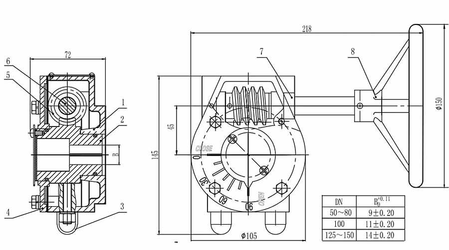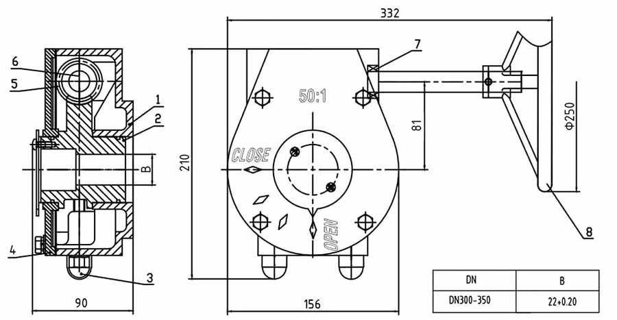 | Передаточное число | Размер DN | Размер NPS (дюйм) | Код присоединительного фланца |