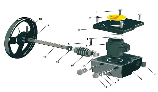 Принцип действия основан на преобразовании небольшого усилия оператора в значительный крутящий момент с помощью червячной пары. Вращение маховика передается на червяк, затем на червячное колесо и выходной вал, соединенный со штоком клапана.